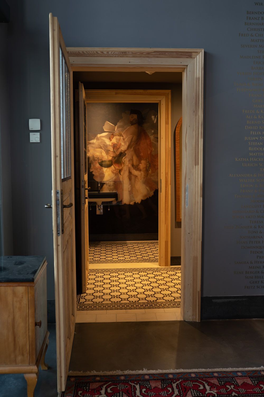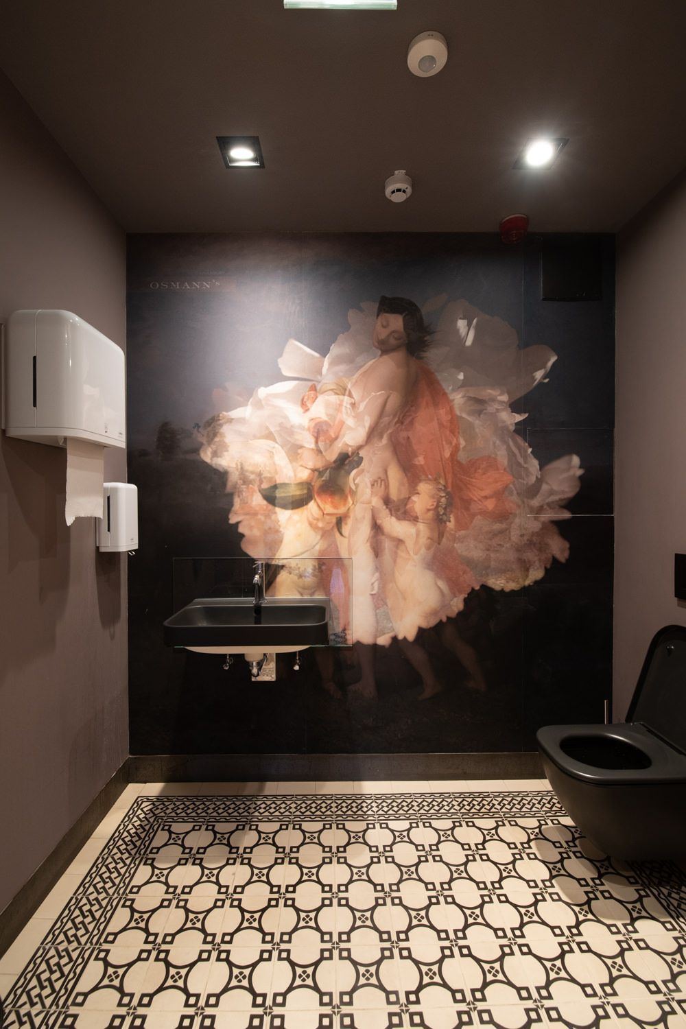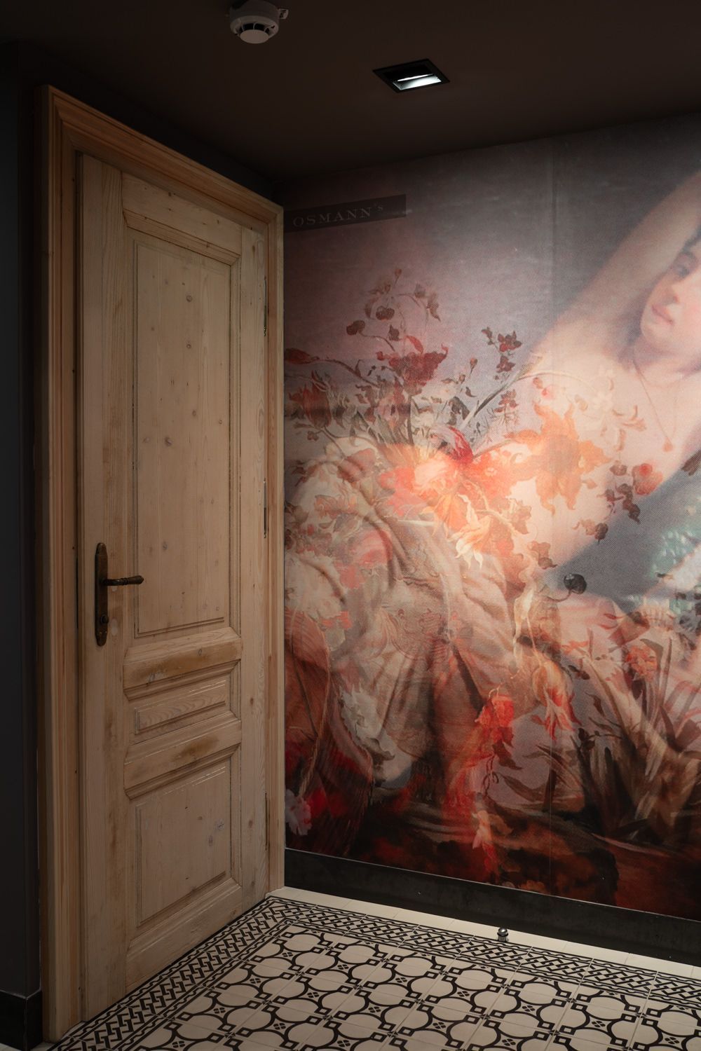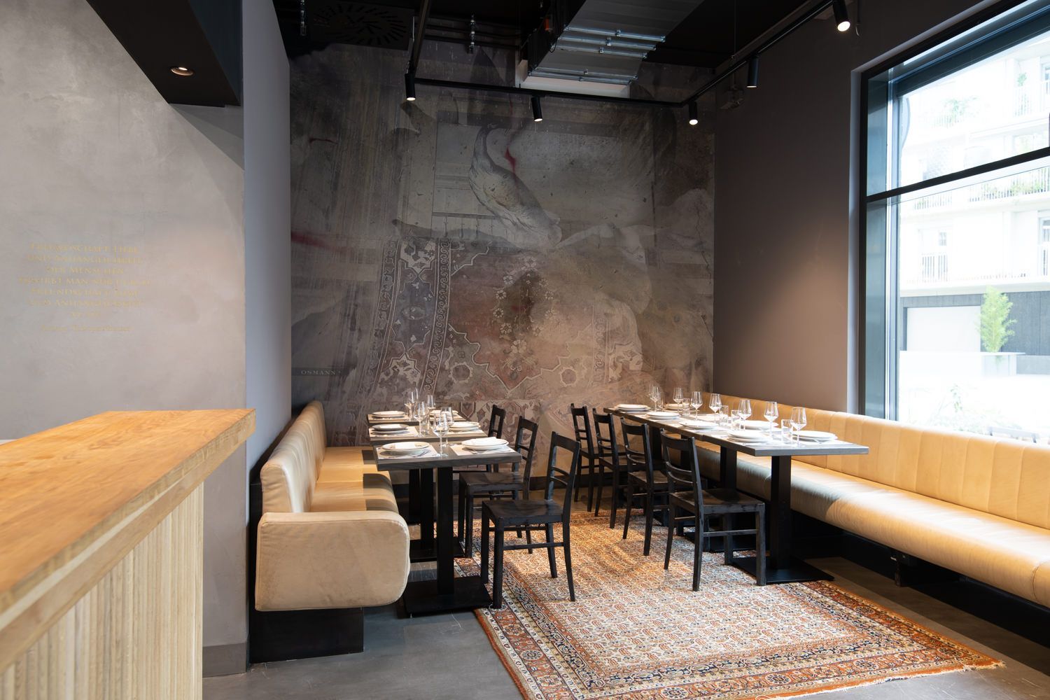 Das Lokal wurde erstmalig mit Marion Osmanns großformatigen und raumhohen Phototapeten ausgestattet. Historische orientalische Motive verschwimmen mit der Natur und schaffen ein neuartiges, aber doch vertrautes Ambiente.