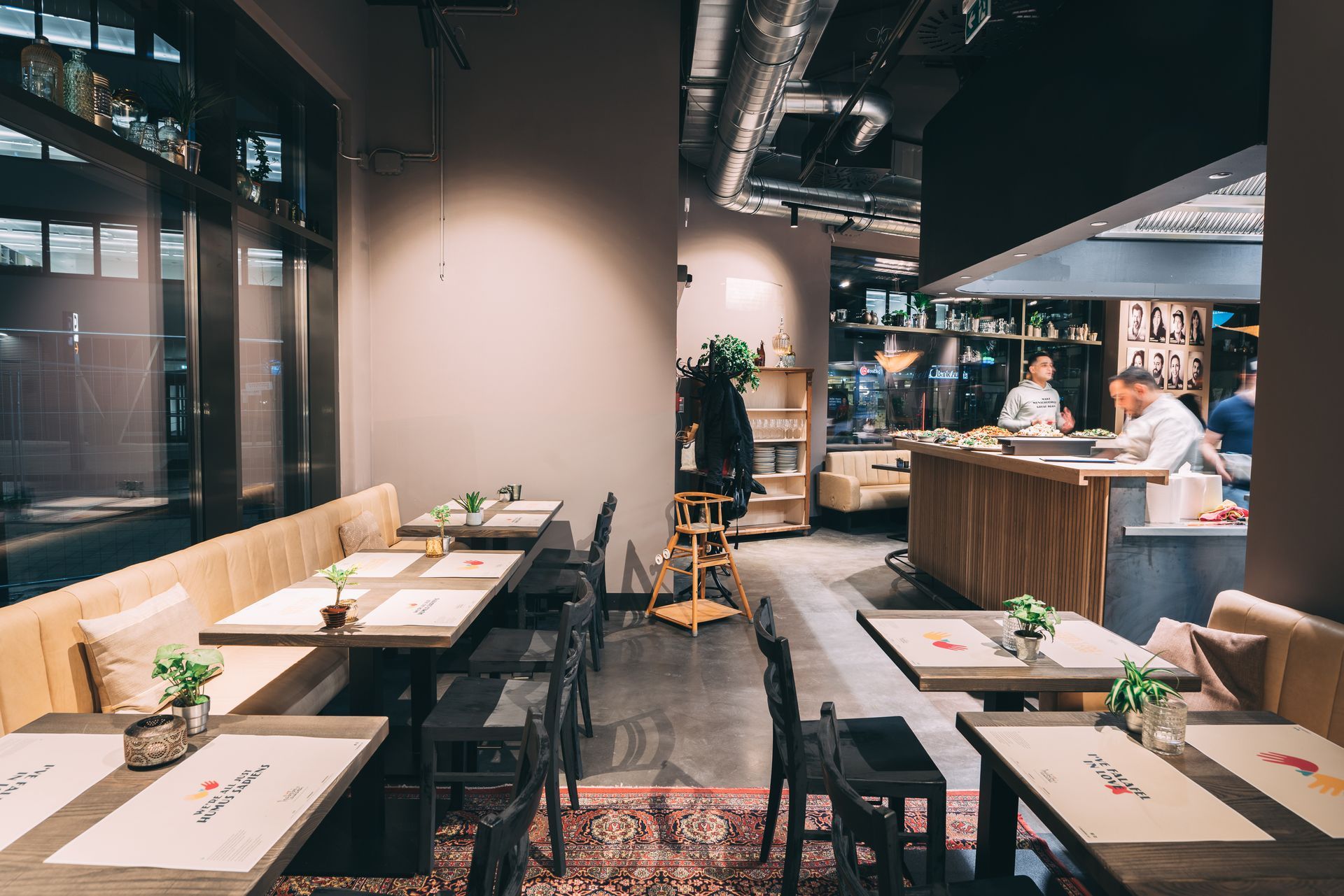 In einem Neubau im jungen Nordbahnviertel, 2. Wiener Gemeindebezirk errichteten die Osmann*s für Habibi & Hawara ein Restaurant mit 100 Sitzplätzen.